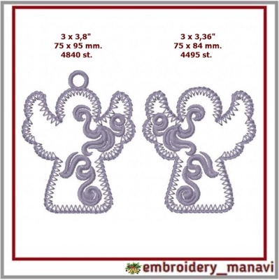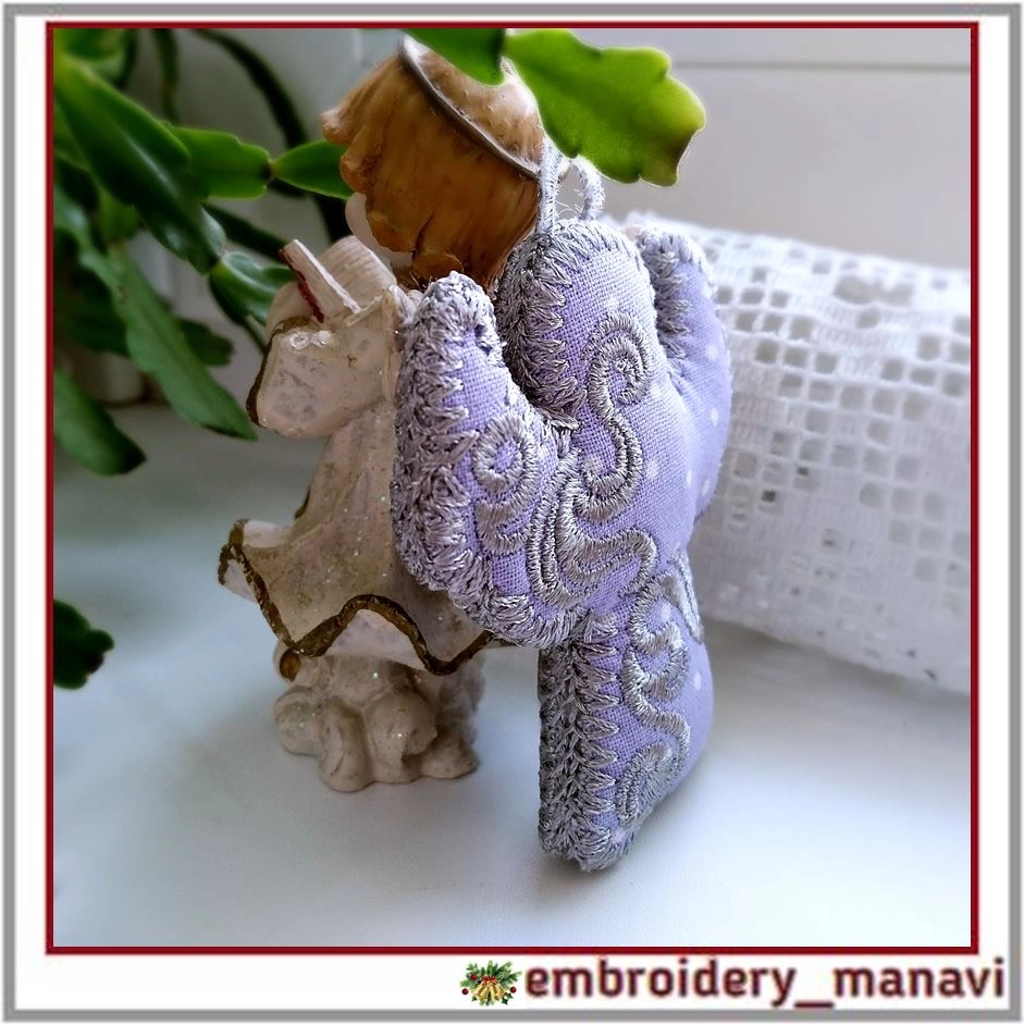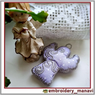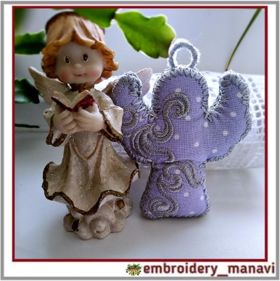 Дизайн для машинной вышивки. Ангел - украшение для ёлки. Размер игрушки 75 х 85 мм. Пошаговая инструкция.
