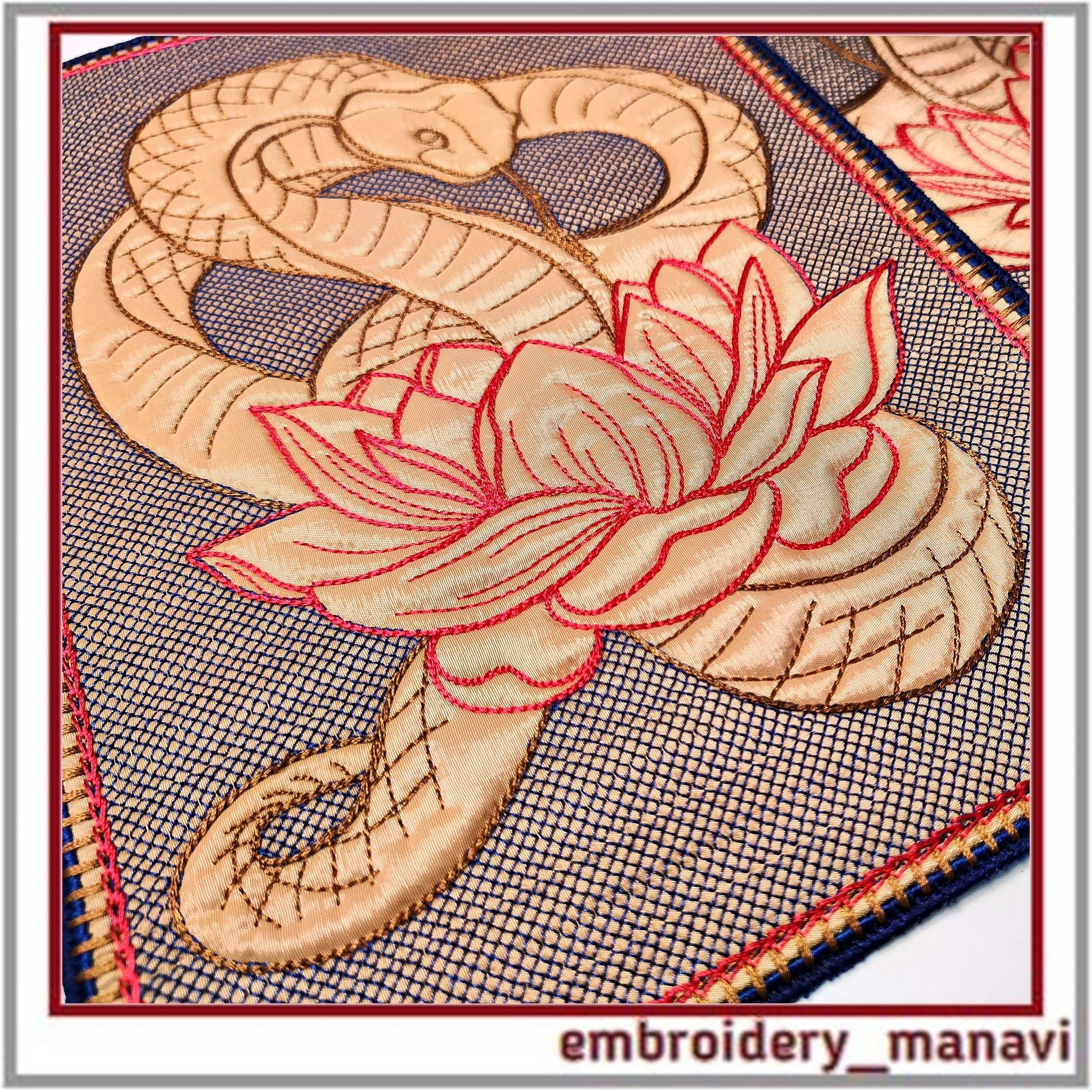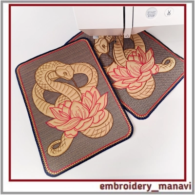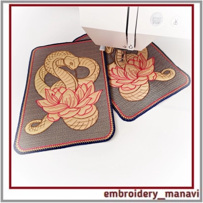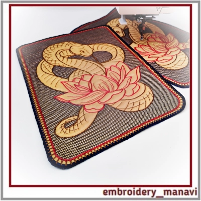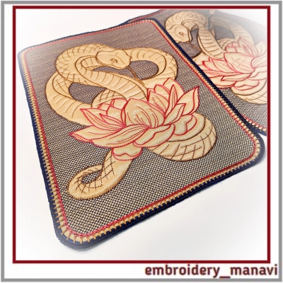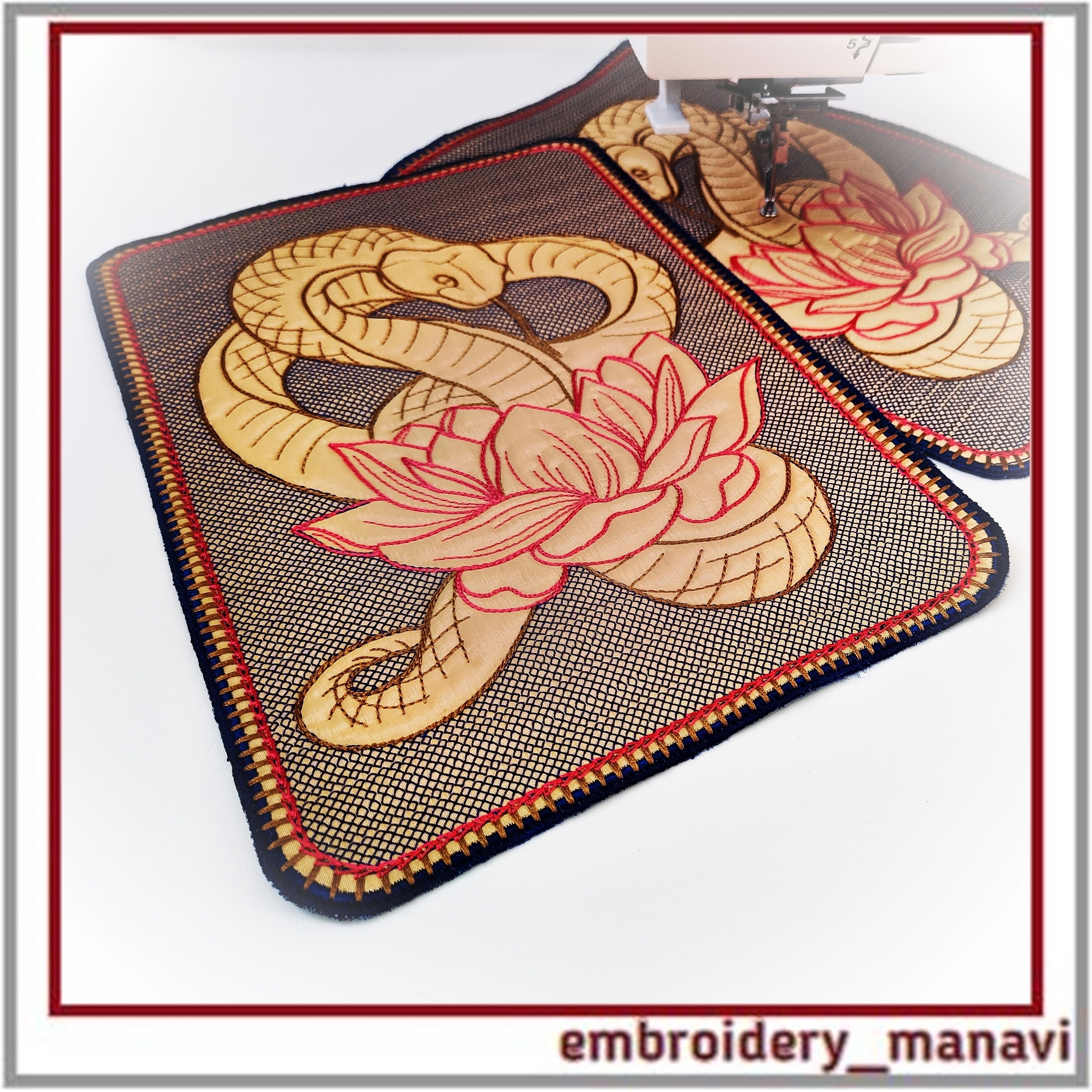 Дизайн для машинной вышивки. Ланчмат со змеёй и лотосом. 1 размер. Для пялец 200 х 280 мм. если вам надо отзеркалить для парных ланчматов - пишите.