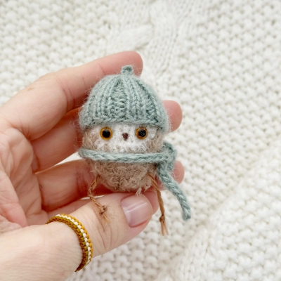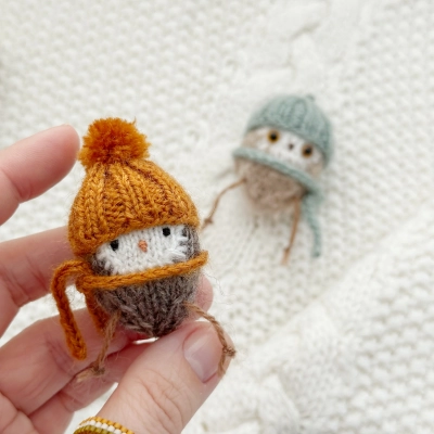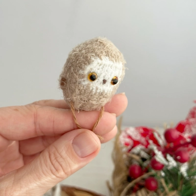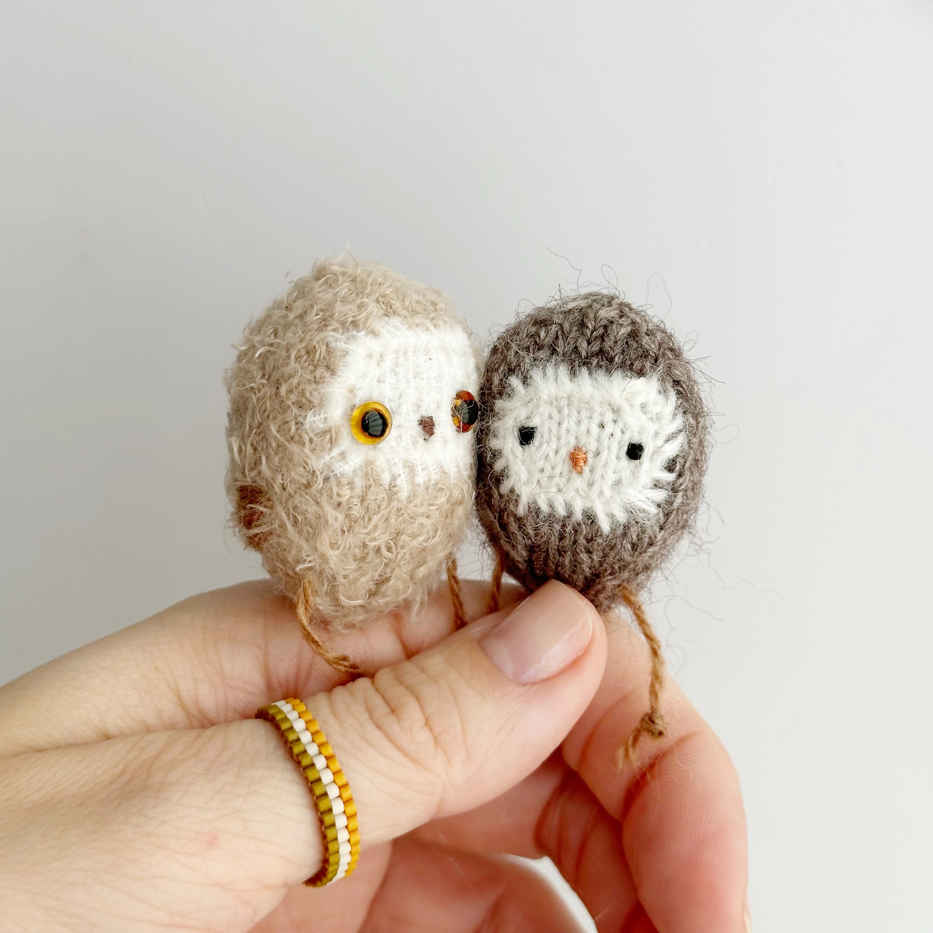 Пряжа:Оттенки и пряжа могут быть любые, но тогда и спицы нужно подбирать индивидуально. Я использовала для тельца Alize Real 40 430м/100г (темно-коричневая пряжа) и Adelia baby toy 255м/50г (светло-коричневая пряжа с ворсом. Adelia довольно тонкая пряжа, поэтому вязала в 2 нити). Для мордочки — белая деталь, выбираем более тонкую пряжу, у меня этоAlize Angora Gold 550м/100г.Для совенка из Adelia baby toy белую часть я связала из остатков велюровой тонкой пряжи, название которой не помню.