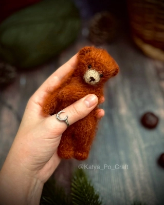 Мастер-класс в формате PDF содержит подробное текстовое описание вязания мишки и фотографии ключевых моментов. Мишка вяжется одной деталью по кругу на трех чулочных спицах, пришиваются только ушки. Лапы вывязываются из тела как рукава на свитере. Размер готовой игрушки при использовании указанных материалов — около 14 см. Сложность работы — средняя, за счет большого количества укороченных рядов. Материалы и инструменты: — Пряжа Nako Paris (у меня цвета №11237 и №5520). Расход — меньше половины мотка. — Чулочные спицы 1,5 мм 5 штук в наборе. — Маркеры для вязания или английские булавки. — Черные бусины 4 мм 2 шт или стеклянные глазки. — Нитки мулине коричневые или черные для вышивания носика и пришивания глаз. — Наполнитель холлофайбер/синтепух. — Палочка для набивания мелких деталей. Я использую палочки для китайской еды. — Ножницы. — Швейная игла и игла с тупым концом и широким ушком для пряжи. — Булавки портновские. — Крючок 1,5-2 мм для поднятия петель. — Металлическая щетка или пуходерка для начесывания.
