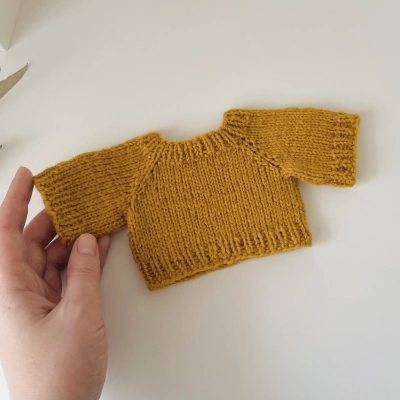Мастер-класс в формате PDF содержит подробное текстовое описание вязания джемперов (2 варианта оформления) и фотографии ключевых моментов для ориентира. Кофточки вяжутся регланом сверху по кругу и надеваются через голову. Моя плотность вязания — 26 петель на 10 см. При такой плотности свитеры подойдут для довольно пухлых игрушек с обхватом тела около 25 см и ручек до 11 см. Я вязала из Alize Lanagold 800 в 2 нити, вы можете использовать другую пряжу метражом около 400м/100г или изменить размер одежды используя пряжу и спицы другой толщины. Материалы и инструменты: — Пряжа Alize Lanagold 800 в 2 нити. У меня цвет №29 (зеленый) и №645 (горчичный). Расход — меньше четверти мотка. — Круговые спицы на леске 2 мм или чулочные спицы. — Маркеры для вязания, булавки для вязания или английские булавки. — Ножницы. — Игла с тупым концом и широким ушком для пряжи. — Крючок 2 мм для поднятия и закрытия петель.