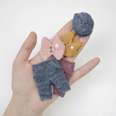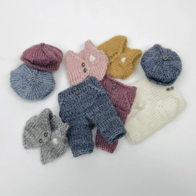 Мастер-класс по вязанию набора одежды для мини мишки в формате PDF. Включает в себя 3 описания вязания: