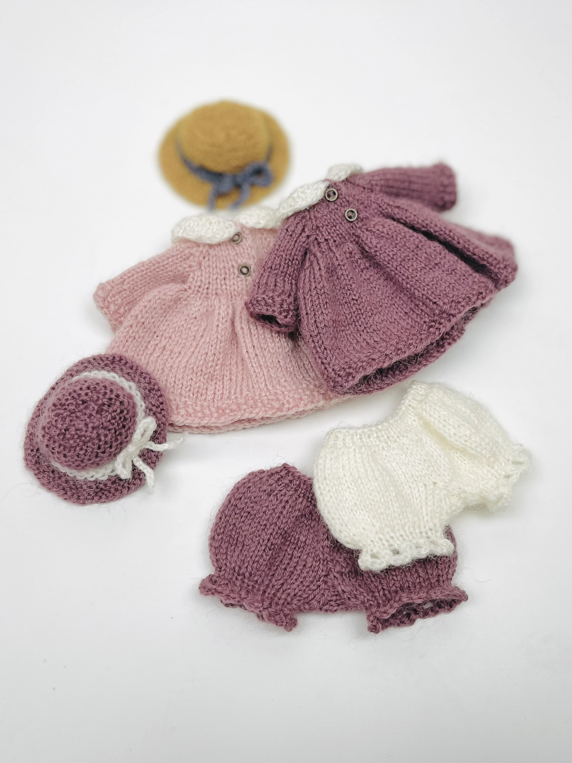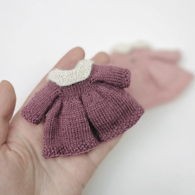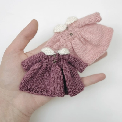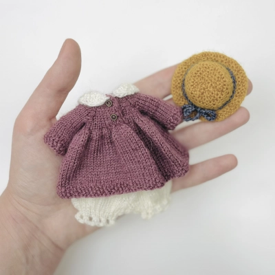 Наряд создавался специально для мини мишки и подходит для игрушек ростом до 11 см. Если ваша игрушка больше, необходимо подобрать подходящую пряжу — примерно в 2 раза тоньше той, из которой был связан мишка, и соответствующие размеры спиц, крючка и пуговиц. Так же размер одежды будет зависеть от вашей плотности вязания.