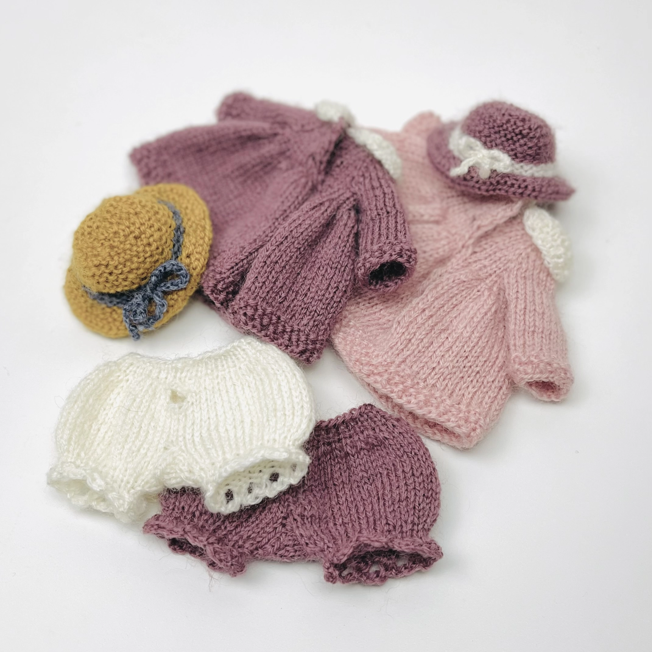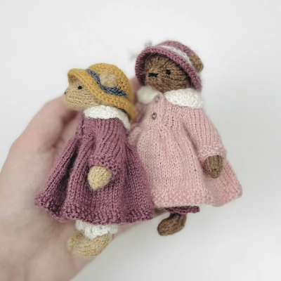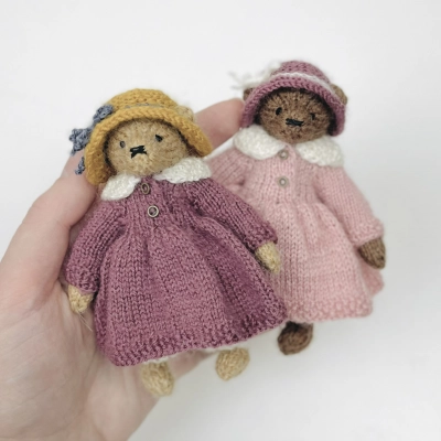 Мастер-класс по вязанию мини мишки с нарядом в формате PDF. Включает в себя 4 описания вязания: