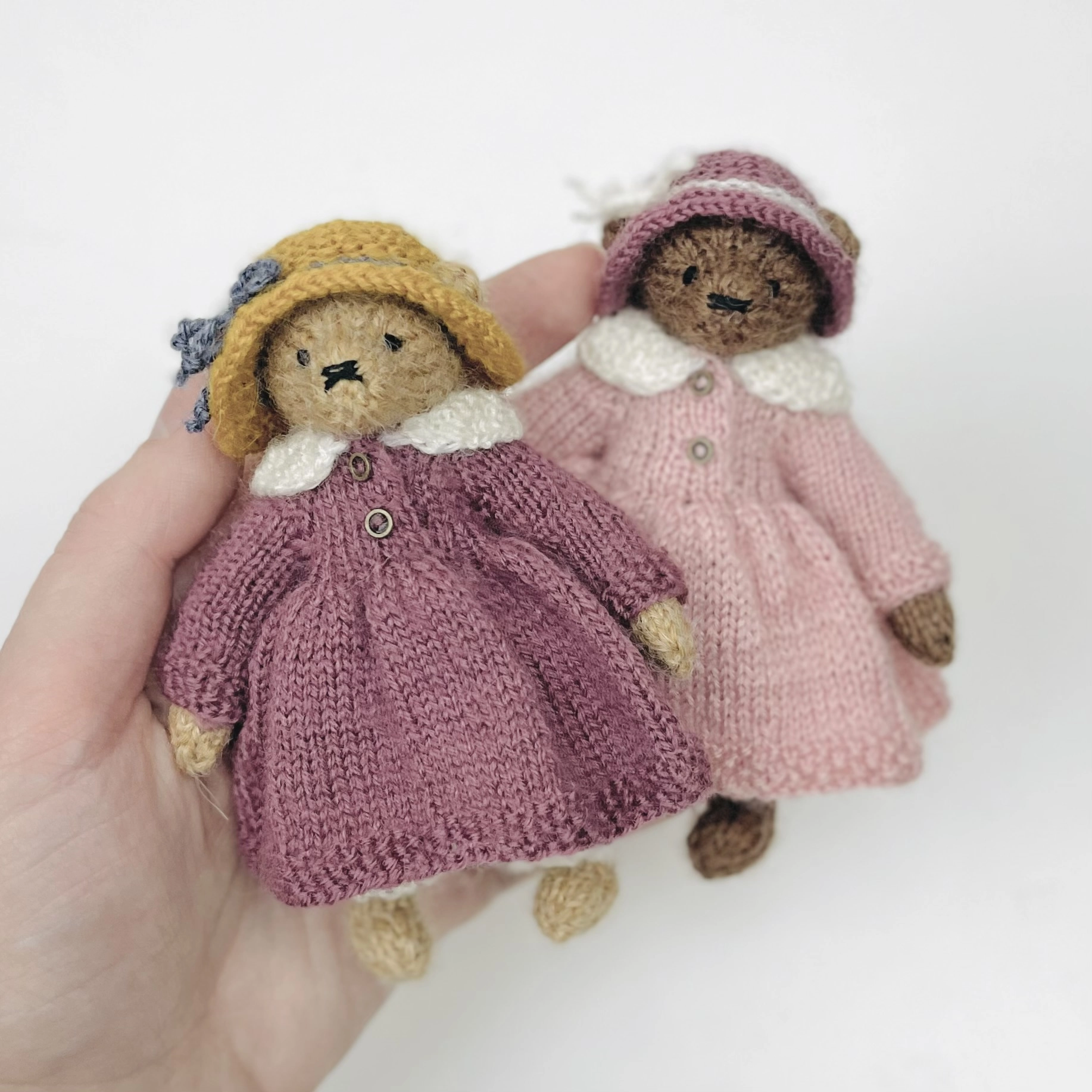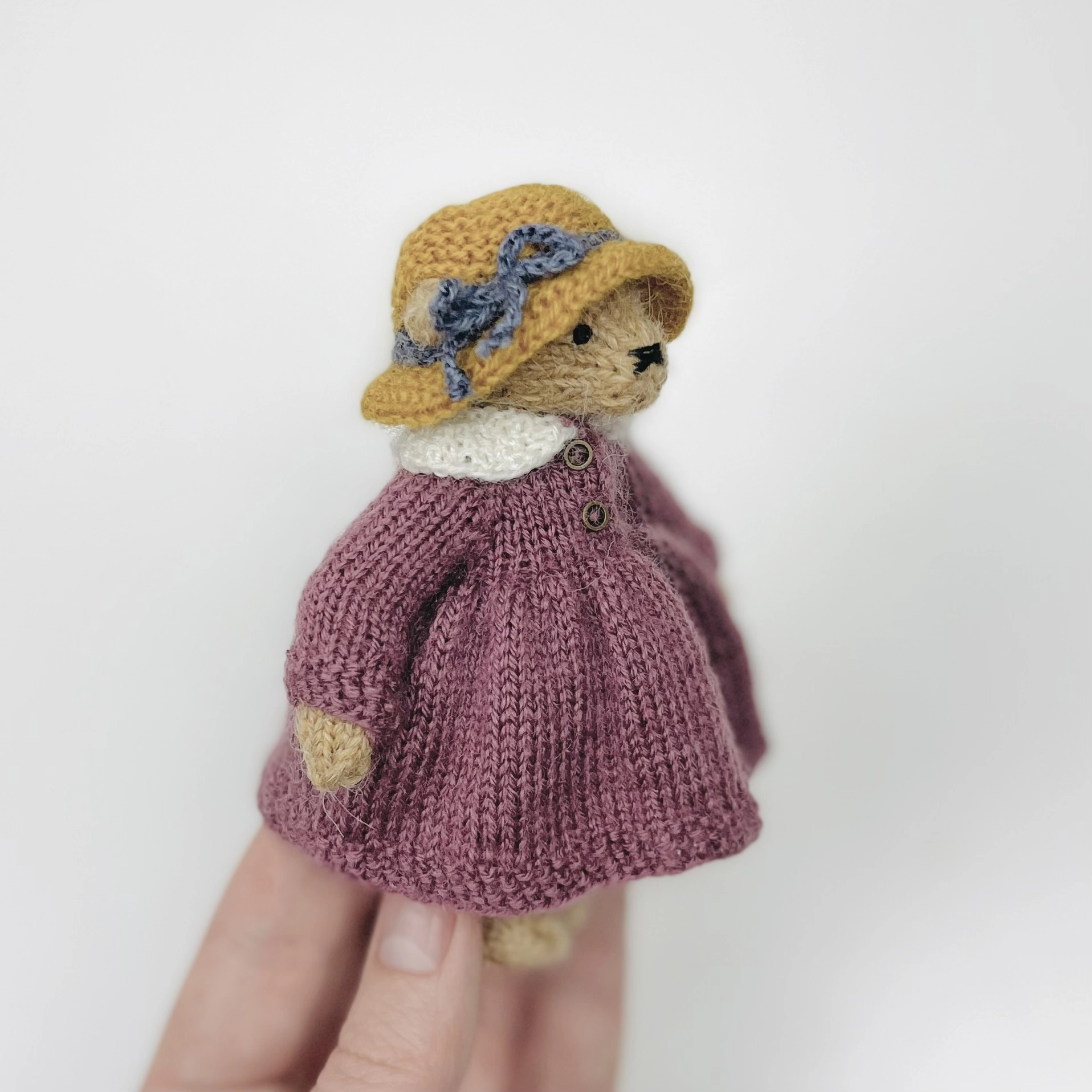 Уровень сложности — выше среднего, так как в крошечных деталях присутствует много укороченных рядов и вязать нужно достаточно плотно.