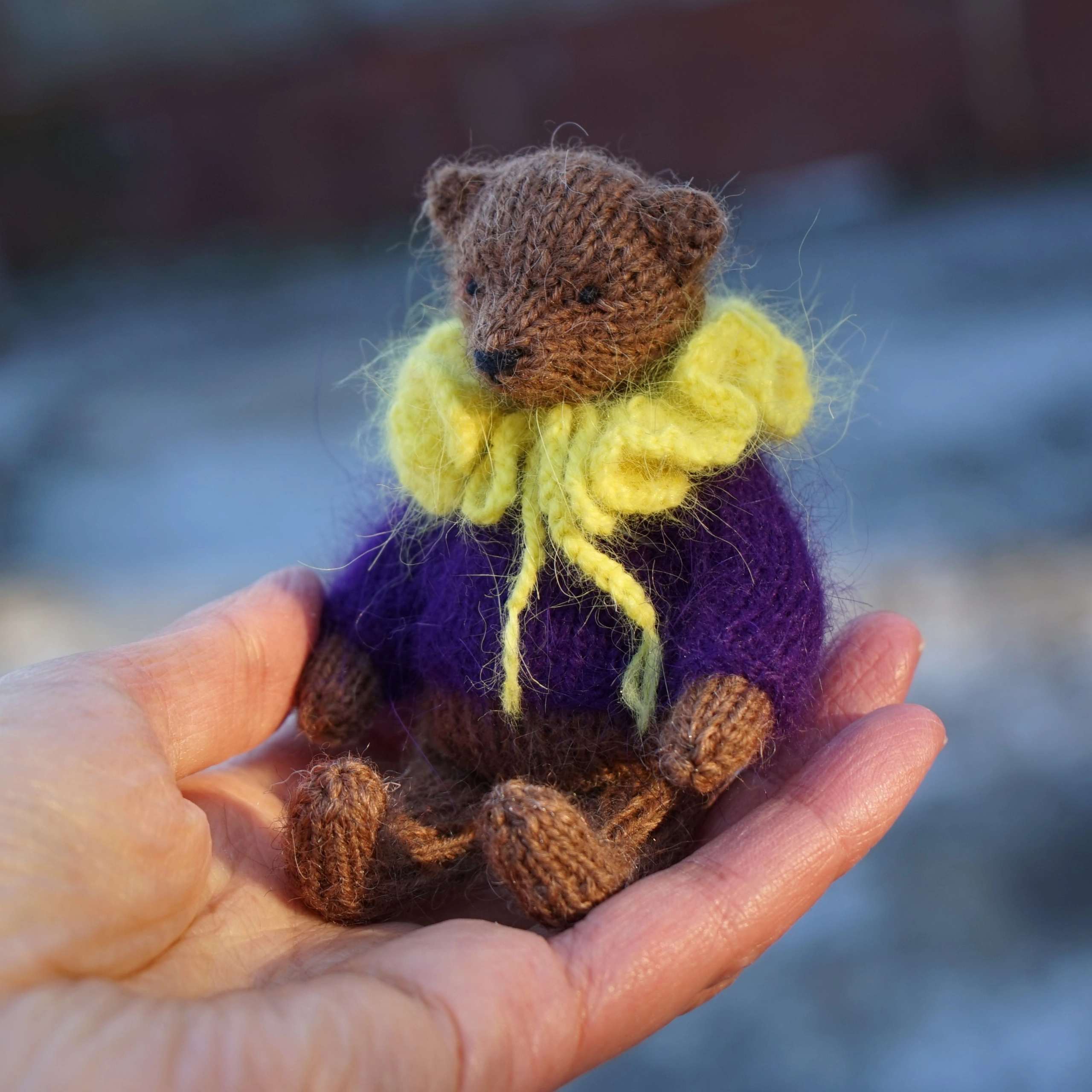 При вязании из тонкой пряжи 150м/50г спицами 1,5 мм, рост игрушек будет около 10 см. Из более толстой пряжи, например 250м/100г, спицами 2 мм рост получится около 15 см.