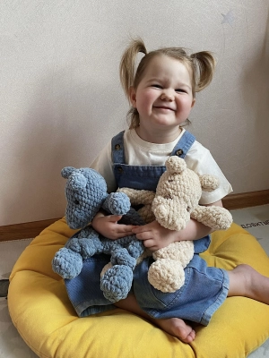 • 2 варианта: используемой пряжи, нижних лапок (с узелками и без), ноздрей, глазок (вставные и вышитые)