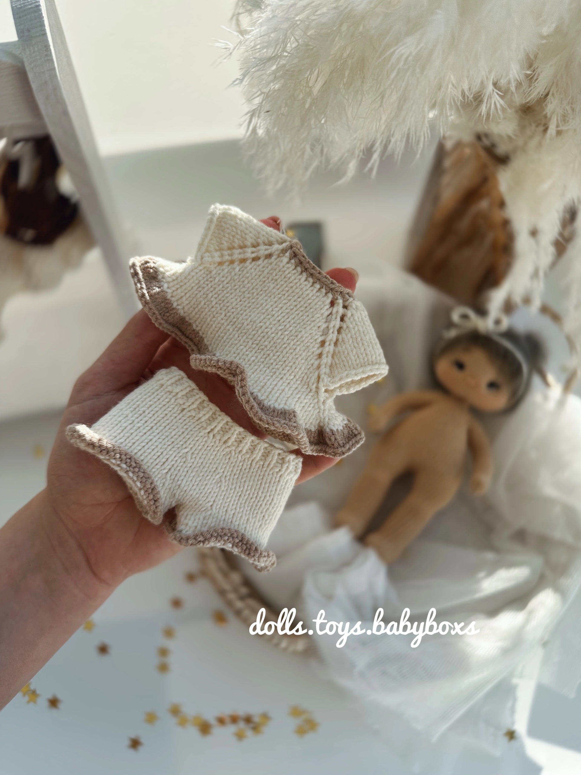 🌸 Мастер - класс представляет собой PDF - файл, с подробным описанием двух комплектов одежды (спицами + крючком) для куклы Николь (20 страниц);
