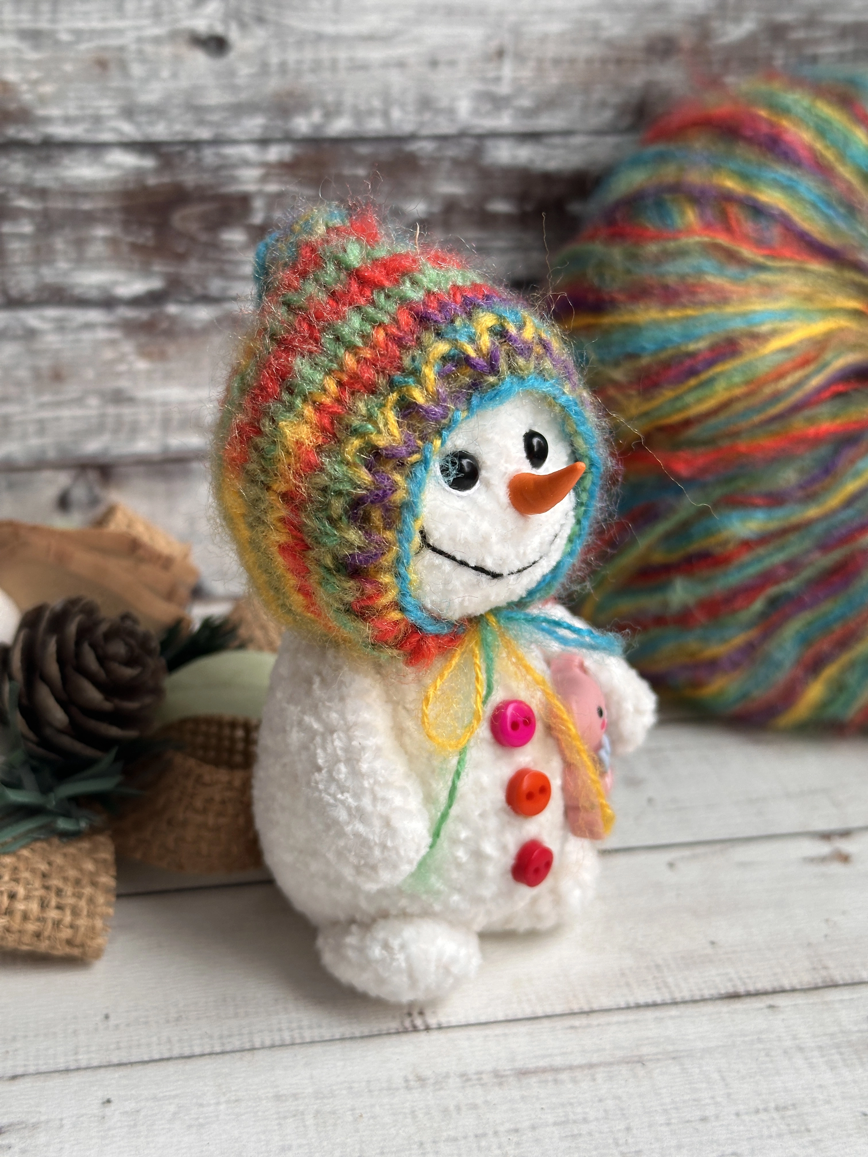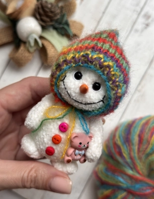 Снеговик вяжется крючком, шапка на двух спицах (прямоугольное полотно). Уровень сложности - легкий.