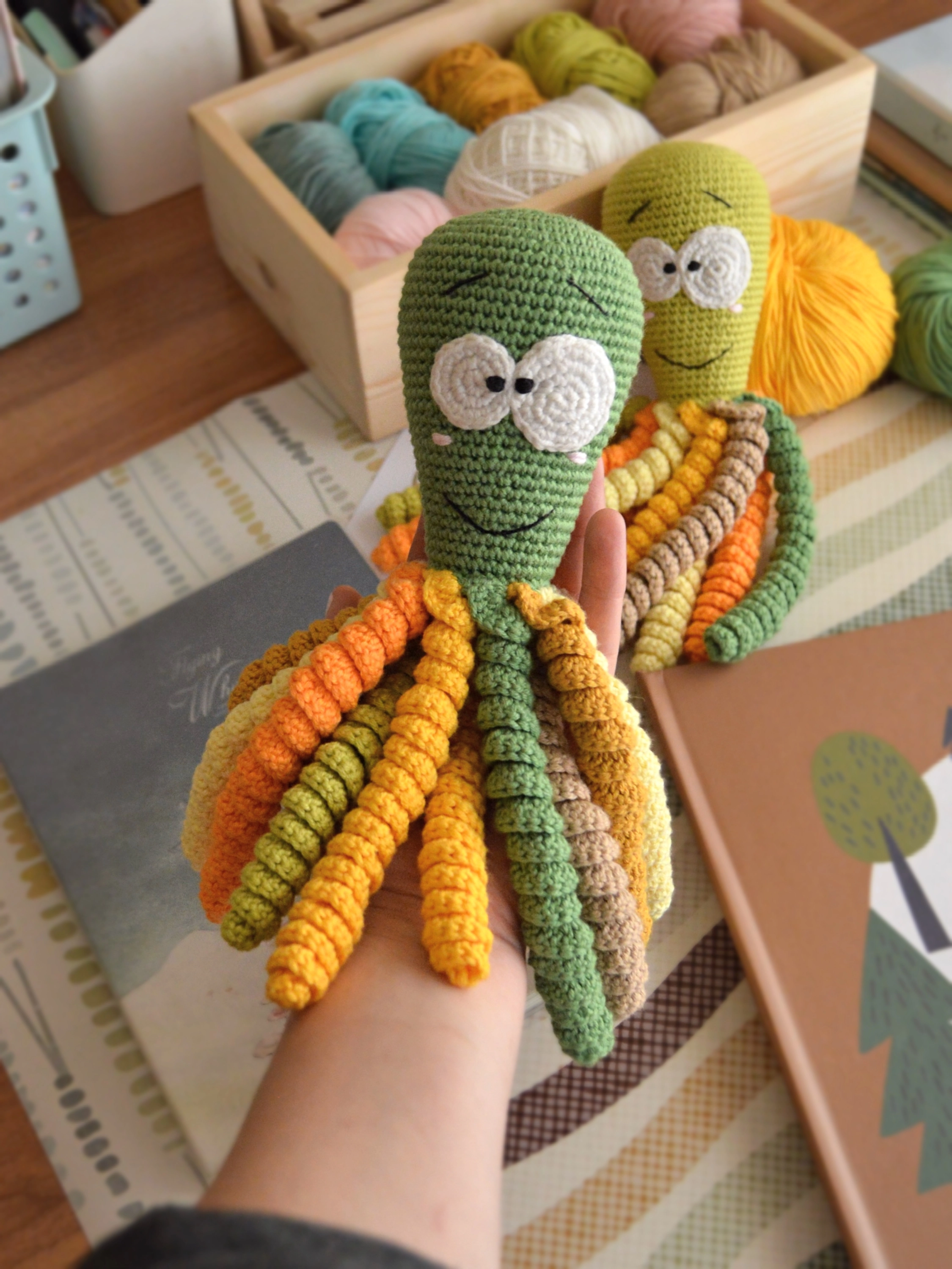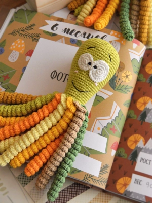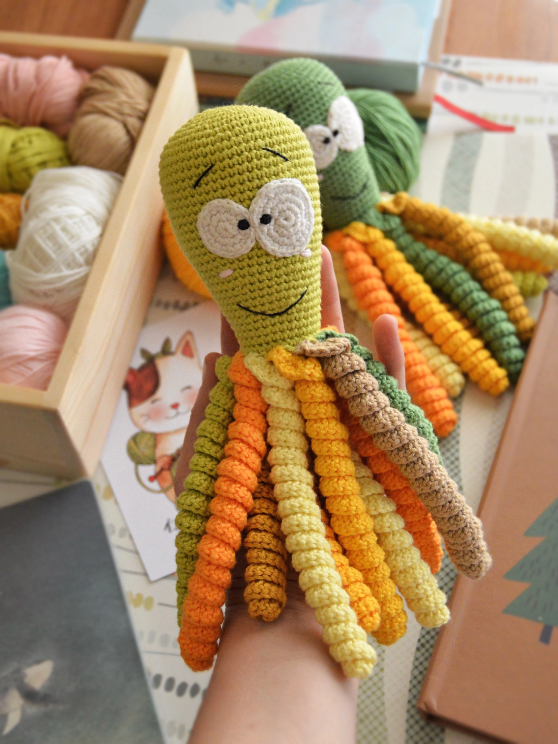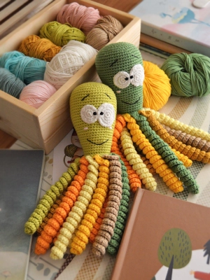 • вспомогательное видео (пришивание деталей, вязание щупалец, вышивка глаз и улыбки)