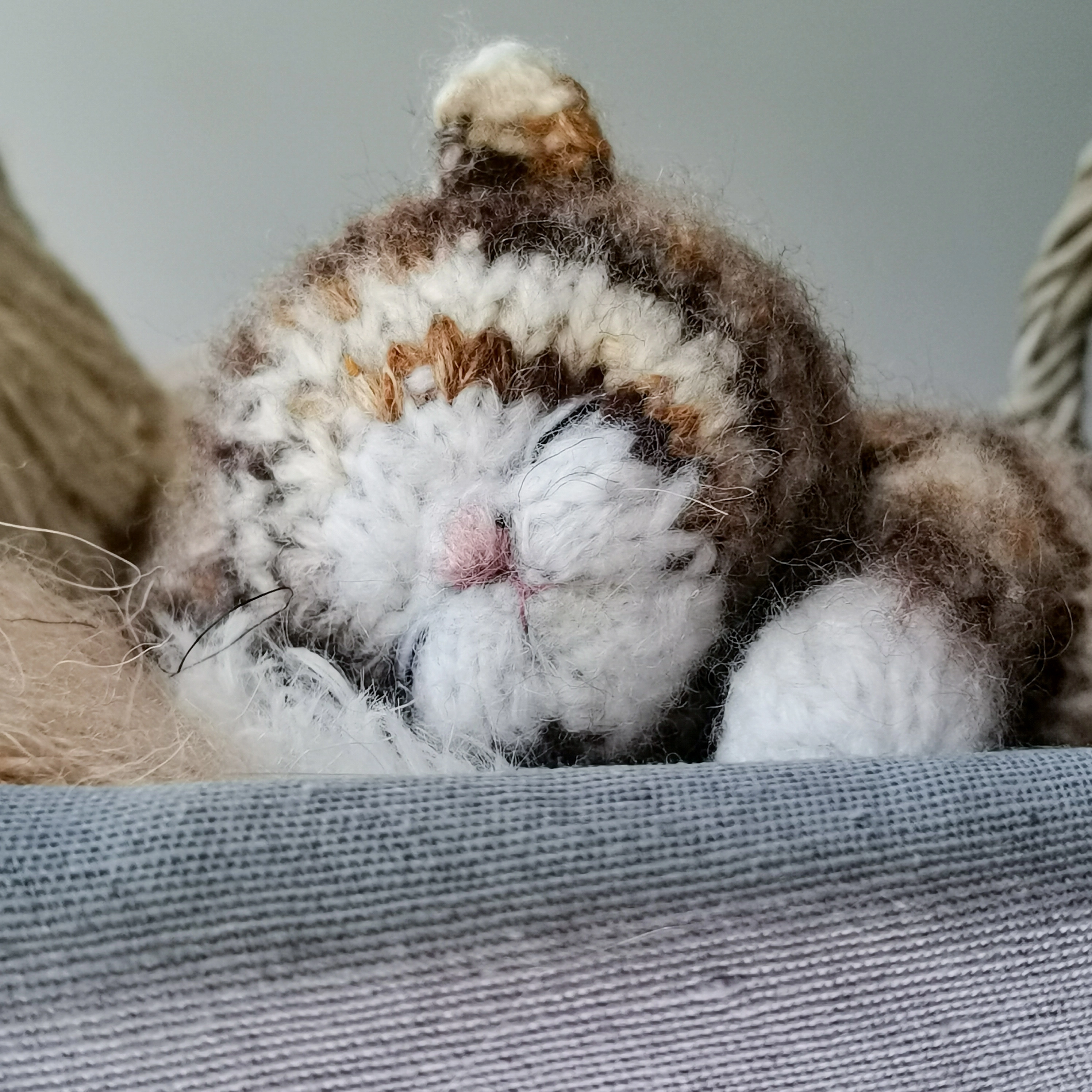 Размер зависит от выбранной пряжи, но примерно около 10-12см без хвоста.