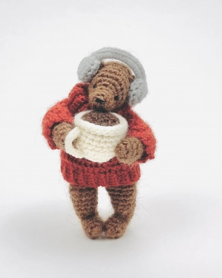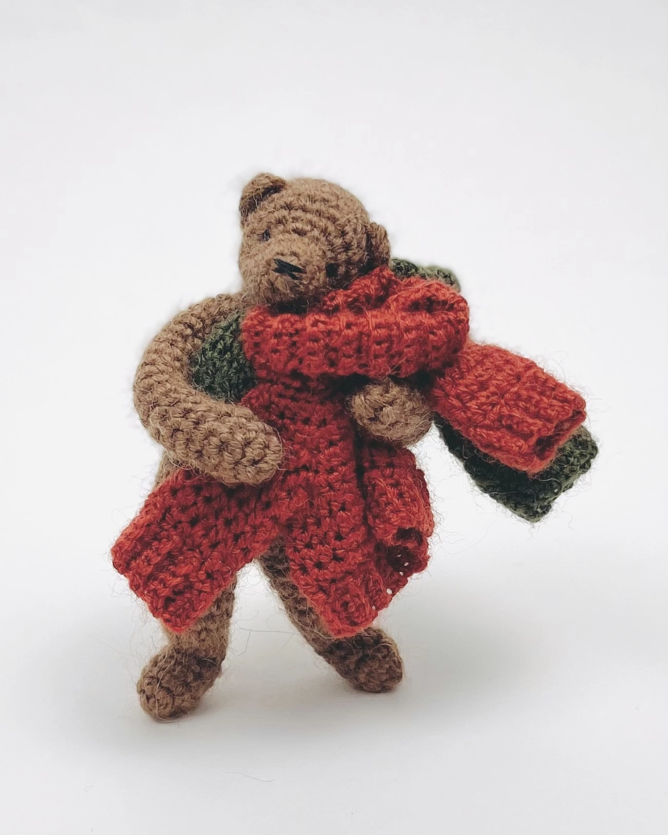 — Для мишки: пряжа Пехорка Перуанская альпака (150м/50г, 50% меринос, 50% альпака). Аналог: Gazzal Baby Alpaca (160м/50г) или любая пряжа похожей толщины — примерно 300м/100г.