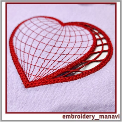 Дизайн для машинной вышивки. Сердце ришелье. Размер дизайна 95 х 84 мм. Подойдет для вышивки на одежде, сумках, столовом и постельном белье, полотенцах и декоративных подушках. При желании можно оформить и как подвеску. Только перед последним цветом обрезать всё лишнее и подставить тесёмочку.