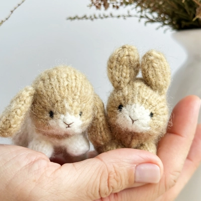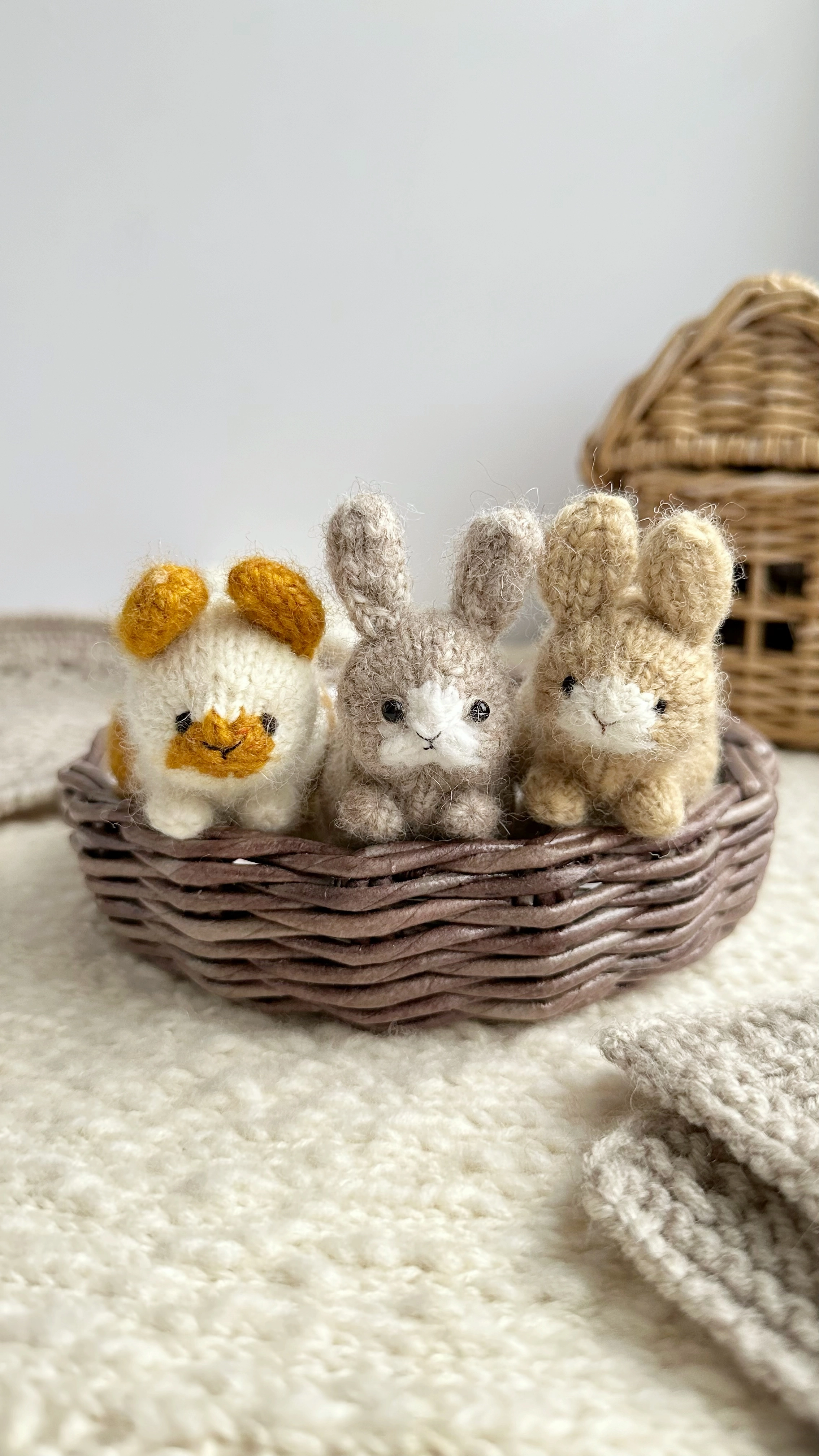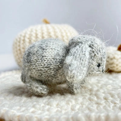 Описание вязания спицами. Голова, тело и хвост вяжутся одной деталью по кругу. Лапки вывязываются из отложенных петель, а ушки пришиваются.